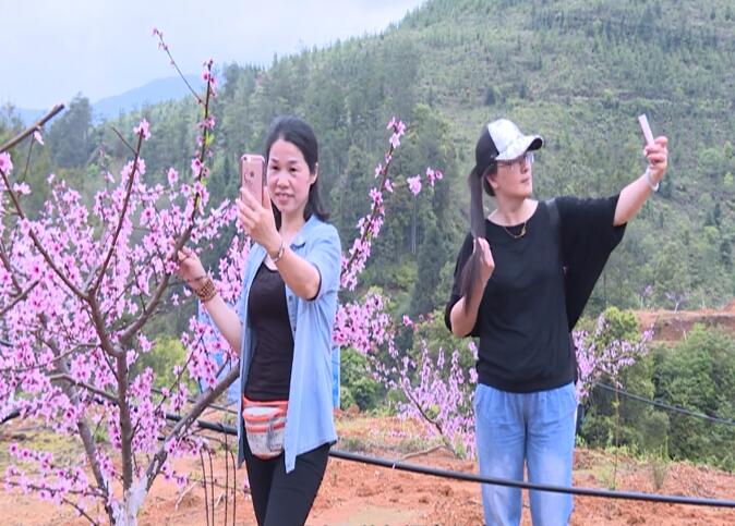 桃花园里,远远望去,像似一把把花伞,姹紫嫣红。走近一看,雨后的桃花,花瓣上含着雨滴,更是娇艳欲滴。花瓣已盛开,一丝丝红色的花蕊,顶着嫩黄色的尖尖,调皮地探出头。一阵春风拂过,朵朵桃花就像花蝴蝶翩翩起舞,散发出阵阵清香。由于桃树还没有长出绿叶,粉红的、深红的、一团团一簇簇,整棵树开满了桃花,显得鲜艳娇美,像一幅美丽画卷,吸引县城和周边乡镇的许多游客慕名前来这里踏青赏花、拍照留念。