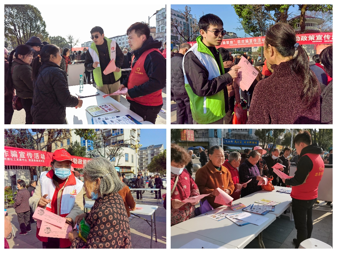 为深入推进社会信用体系建设,加大诚信理念教育宣传,进一步提升辖区居民防诈意识,提高识诈能力,保障群众财产安全,2月22日上午,城北社区携手县民政局、明溪县明德社工发展中心开展“铸就防诈长城 擦亮识骗慧眼”防诈骗宣传活动。
