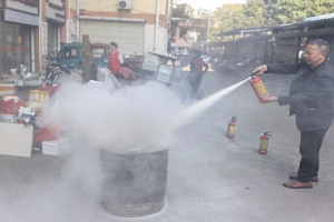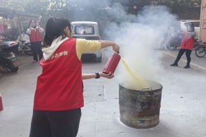 为让居民真正掌握初期火灾扑救技能,排查宣传结束后,工作人员在小区广场组织开展灭火器实操演练。演练现场,工作人员结合典型火灾案例,详细讲解了灭火器的适用场景、存放注意事项,重点演示了 “提、拔、握、压” 四字操作口诀,同时结合实操器材,再次向参与群众强调正规灭火器在压力、喷射效果等方面的合格标准,对比假冒灭火器的质量缺陷和使用风险,进一步加深大家对正规消防产品重要性的认知。工作人员手把手指导社区志愿者、小区居民和物业工作人员进行实操练习,大家轮番上阵,亲自拿起灭火器,对准模拟火点规范操作,从最初的紧张生疏到逐渐熟练掌握,在沉浸式体验中切实提升了初期火灾处置能力。工作人员还针对演练中发现的操作不规范问题,逐一纠正指导,确保每一位参与者都能听得懂、记得住、用得上,真正把消防安全技能转化为守护自身安全的 “硬本领”。