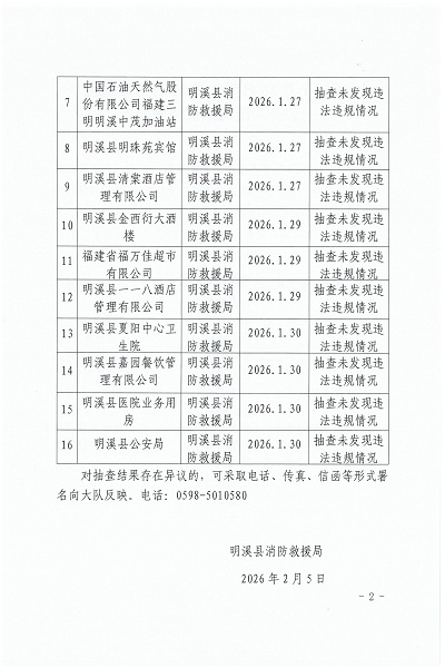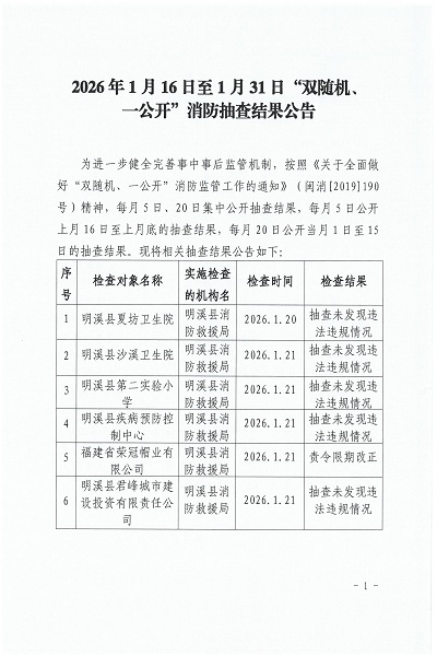 2026年1月16日至1月31日“双随机、一公开”消防抽查结果公告