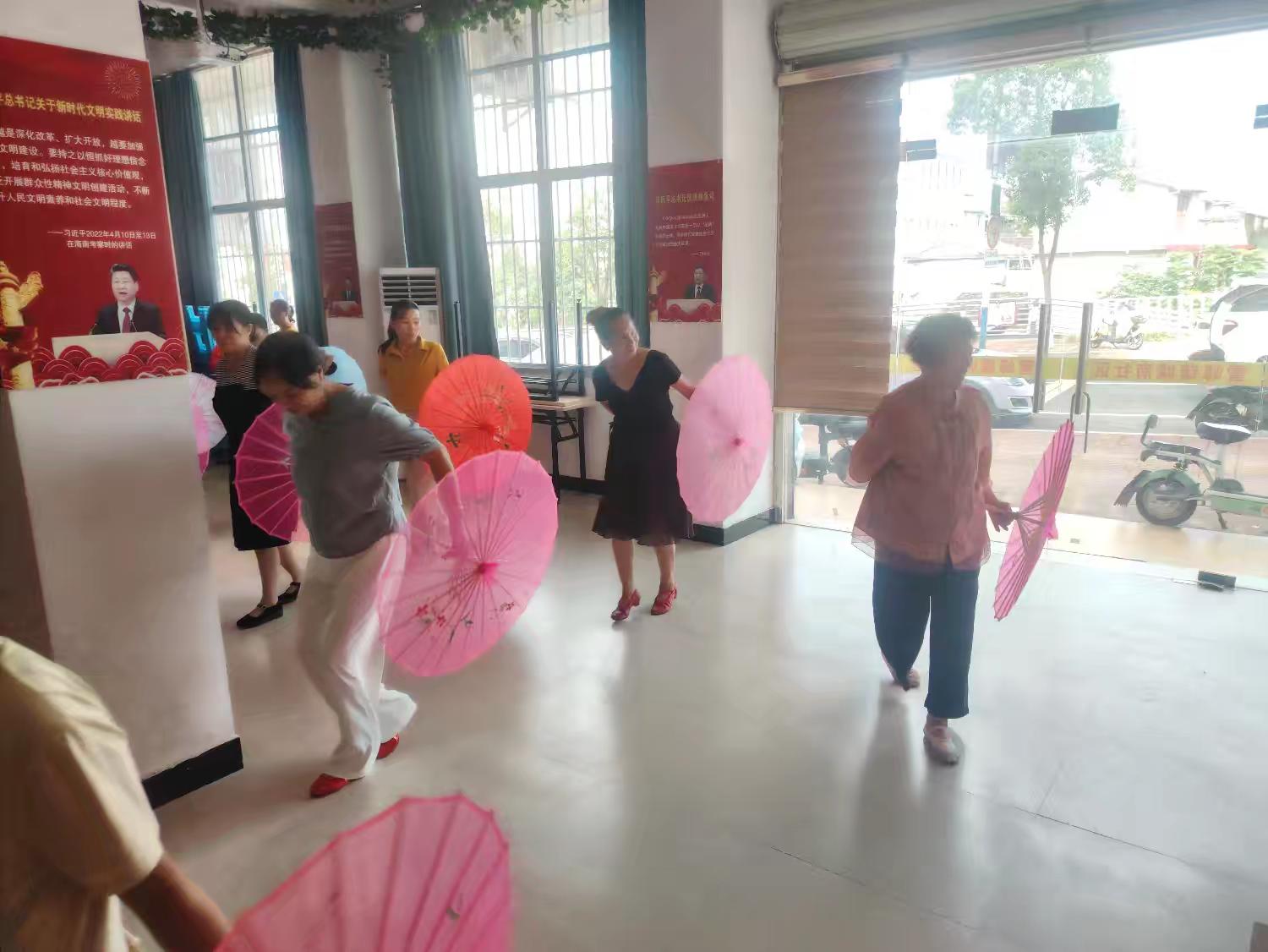 室内的舞蹈教室里,中老年女性学员们手持花伞,跟随音乐翩翩起舞。舞蹈不仅提升了身体的协调性,也让大家在优雅的动作中感受艺术的美好。