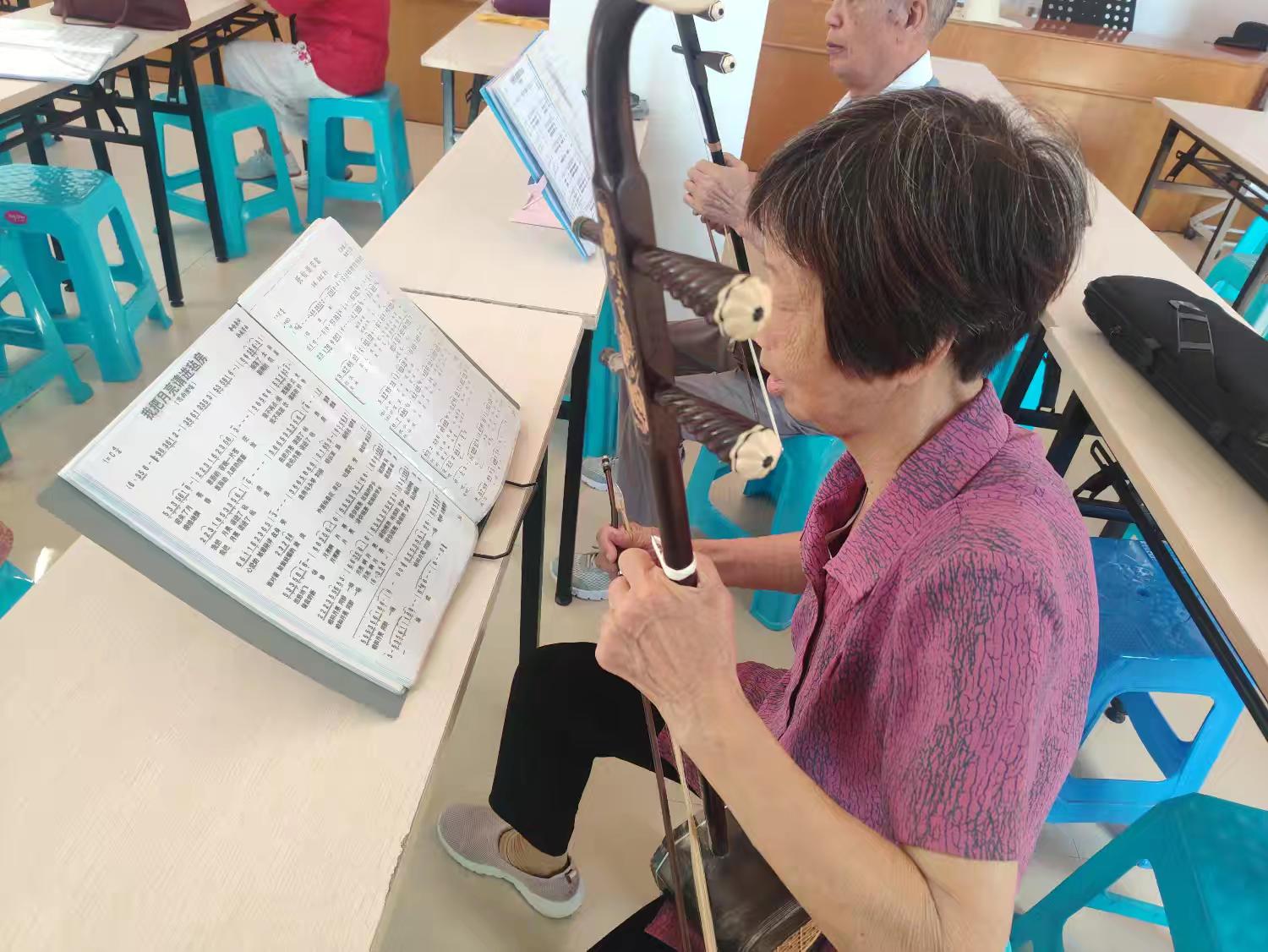二胡课程则为喜欢传统乐器的学员提供了学习机会。老人们专注地拉奏着,在悠扬的琴声中享受音乐带来的宁静与愉悦。