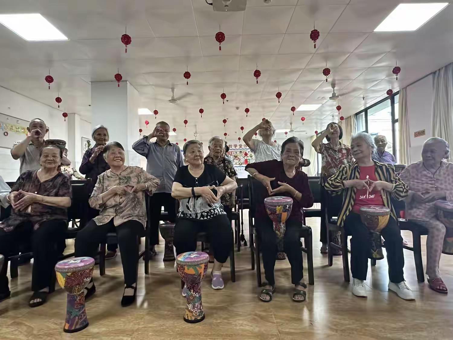 在德亨仁厚养老院的音乐教室里,一阵充满异域风情的鼓点铿锵响起——令人惊喜的是,这竟是时下流行的《黑桃A》旋律!更令人惊叹的是,演奏者是一群平均年龄超过60岁的长者,他们正用布满岁月痕迹的双手,在非洲鼓上敲击出青春的节奏。