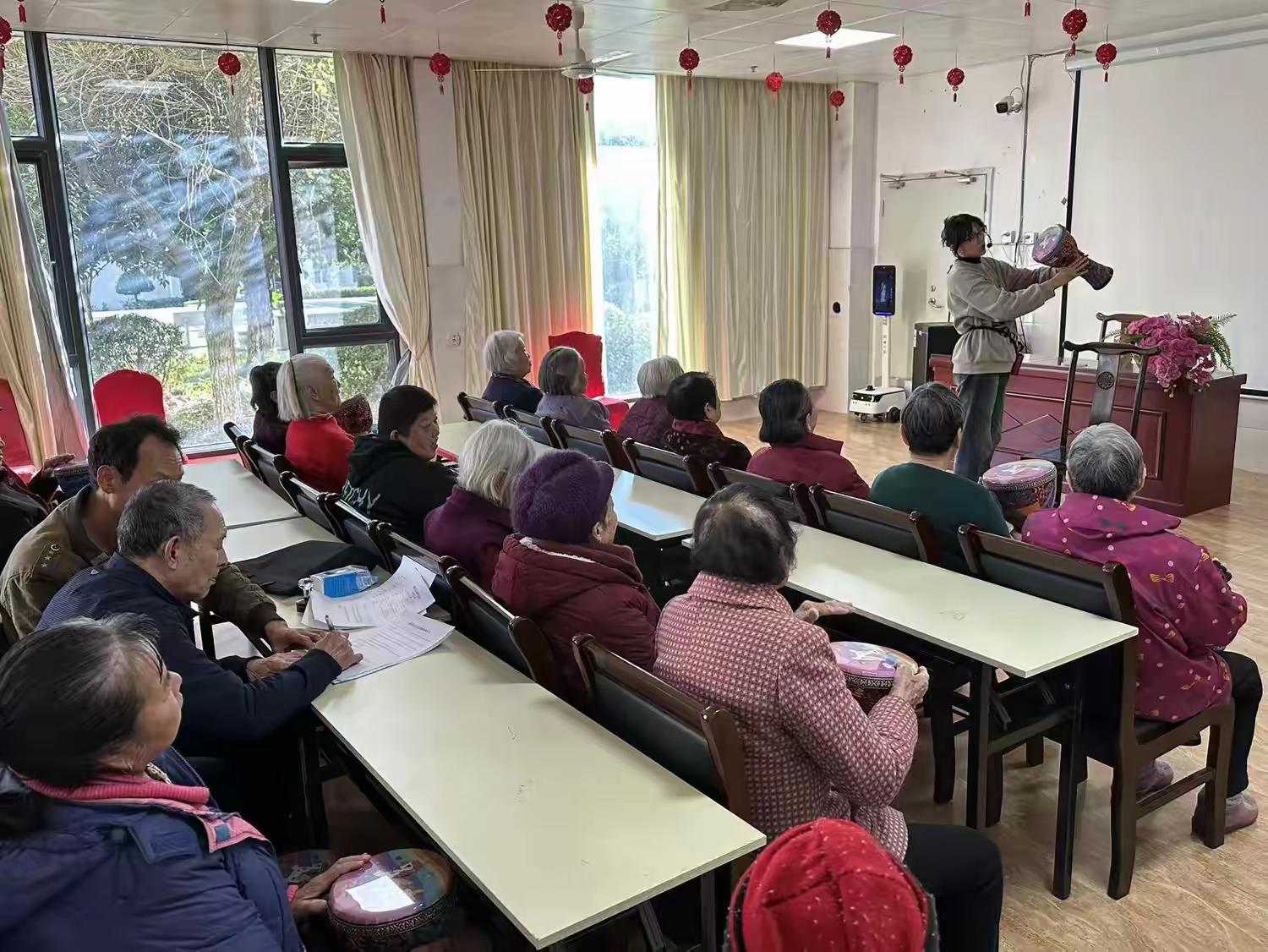 当《野心家》熟悉的旋律响起,活动室里瞬间变成了一个充满能量的小宇宙,每个人的面前都放着一只精巧的手鼓。每一位长者都是这场演出的“野心家”。他们忘却了年龄,沉浸于音乐的律动之中。脸上洋溢的,是孩子般纯粹的笑容;指尖流淌的,是历经千帆后的从容与热情。鼓声时而激昂,如万马奔腾;时而轻快,如溪水潺潺。这一刻,他们用鼓声讲述着自己的故事——关于热爱,关于不服老,关于对生活永不熄灭的“野心”。