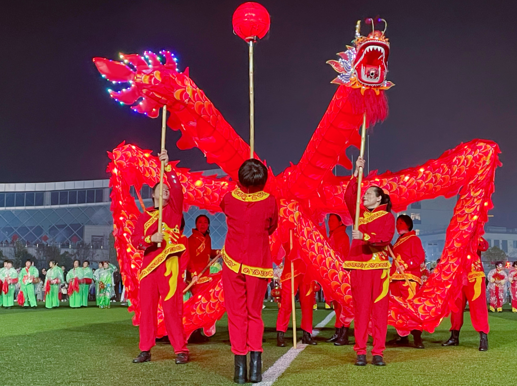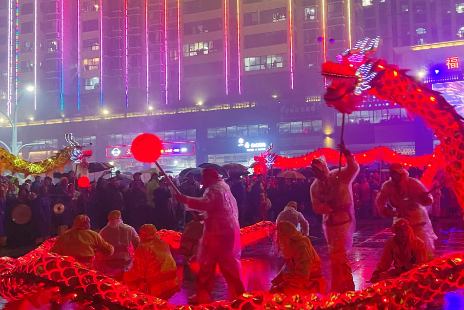 天气微凉,小雨润湿,一场充满活力和美好愿景的元宵盛会在此起彼伏的鞭炮声中拉开帷幕。活动现场,万人倾巢而出,锣鼓喧天,300余名表演者组成锣鼓、舞龙2个民俗表演方队,身着节日盛装,从县宾馆出发,途径县政府、欧侨广场、时代广场、体育中心等地,以城关乡人民政府为终点,边走边表演丰富多彩的民俗节目,为群众送上新春祝福。只见“巨龙”伴随着欢腾的锣鼓声腾、挪、穿、跃,在夜幕中绚丽夺目,或潜龙在渊,或见龙在田,或飞龙在天,将现场气氛瞬间拉满。喜气洋洋的舞龙、红红火火的踩街,热闹了小山城的正月天,也闹出了一个多姿多彩、有声有色的元宵佳节。