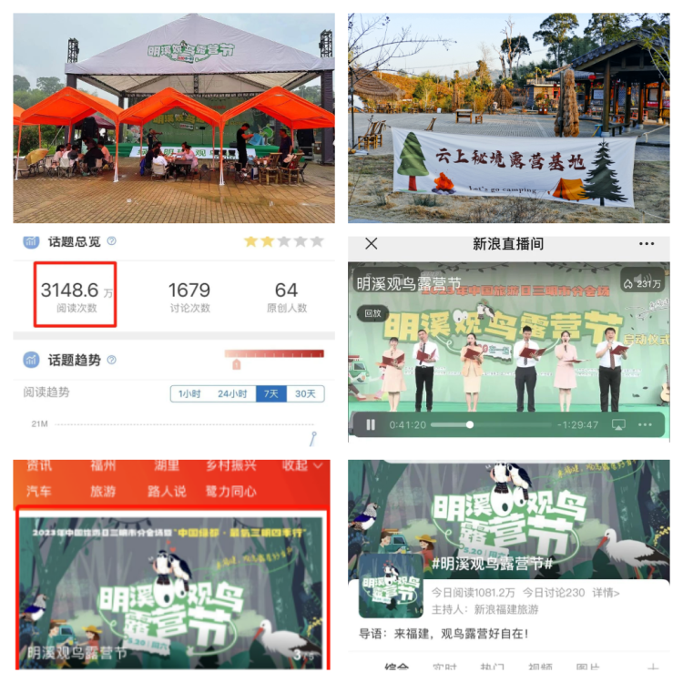 一是政策引领激活市场。出台《明溪县促进民宿高质量发展实施办法(试行)》《明溪县旅游服务质量提升攻坚行动方案》《明溪县壮大欧品购市场促进文旅消费奖励办法》,制定市区过夜奖、旅游专列奖,激活市场。二是旅游设施日益完善。翠竹洋火山口景区成功创建国家AAA级旅游景区;完成南山遗址配套服务设施提升(一期)、胡坊肖家山AAA级景区提升等8个重点项目及22个附属项目建设及肖家山树屋、翠竹洋观景民宿等特色观鸟民宿建设;开发生态观鸟“福鸟”扇、;“绿海明珠 生态福地”生态观鸟摆件、观鸟养生香等文创产品。三是旅游活动引爆流量。举办“中国绿都·最氧三明四季行”明溪观鸟露营节活动,#明溪观鸟露营节#话题阅读量超3100万,两次跻身新浪微博热搜榜前三位,线上活动直播累计播放231万。新浪、中新网、东南网、中国网、台海网、今日头条、搜狐、网易、福建日报等多家权威媒体平台报道,打响“绿都明珠·观鸟明溪”品牌!