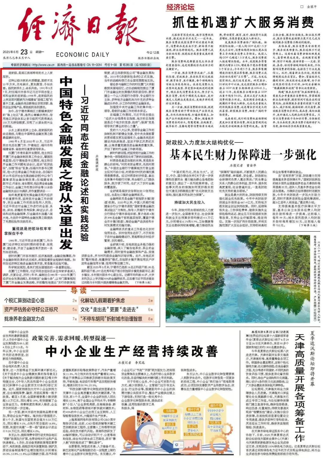6月23日,《经济日报》头版头条刊发《中国特色金融发展之路从这里出发——习近平同志在闽金融论述和实践经验》。