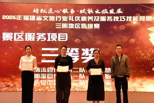 近日(10月31日至11月1日),2025年福建省文旅行业礼仪素养及服务技巧技能竞赛三明地区选拔赛在泰宁县成功举办。来自三明市各县(市、区)17支代表队的52名选手参加了竞赛。
