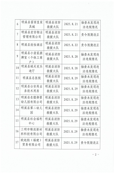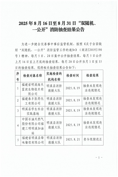 2025年8月16日至8月31日“双随机、一公开”消防抽查结果公告