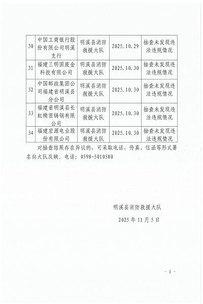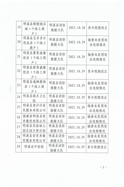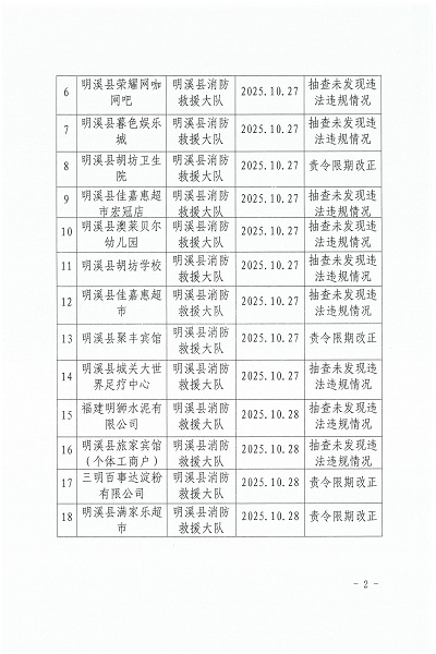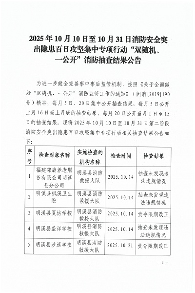 2025年10月10日至10月31日消防安全突出隐患百日攻坚集中专项行动“双随机、一公开”消防抽查结果公告