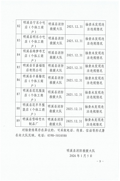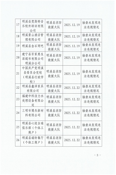 2025年12月16日至12月31日消防安全突出隐患百日攻坚集中专项行动“双随机、一公开”消防抽查结果公告