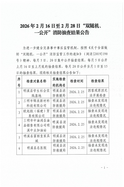 2026年2月16日至2月28日“双随机、一公开”消防抽查结果公告