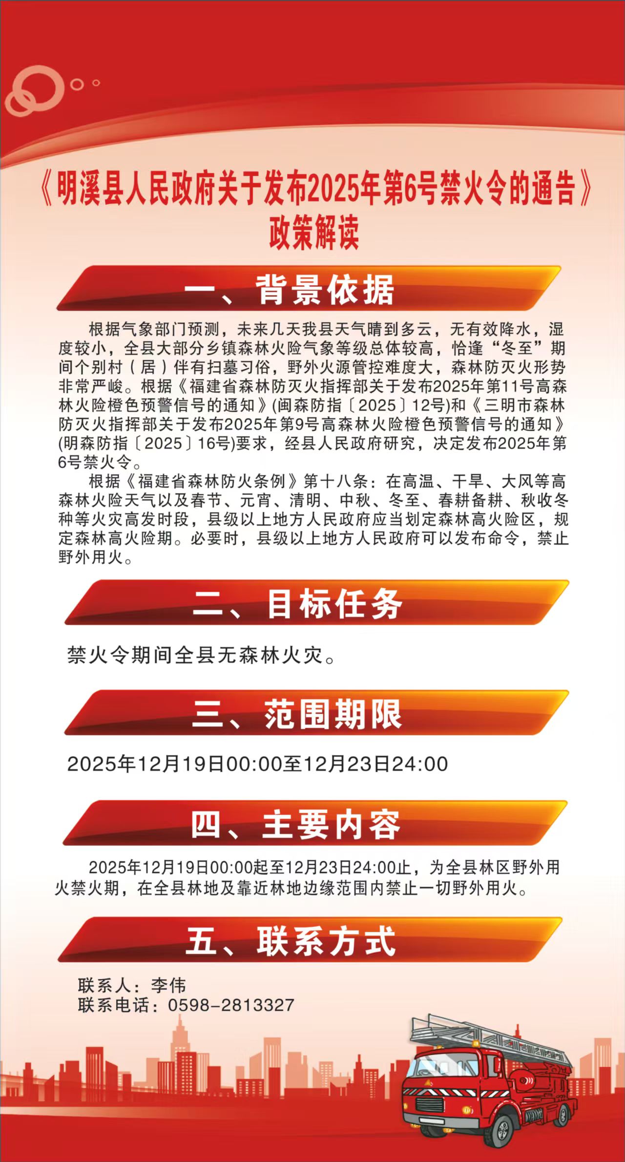 明溪县人民政府关于发布2025年第6号禁火令的通告