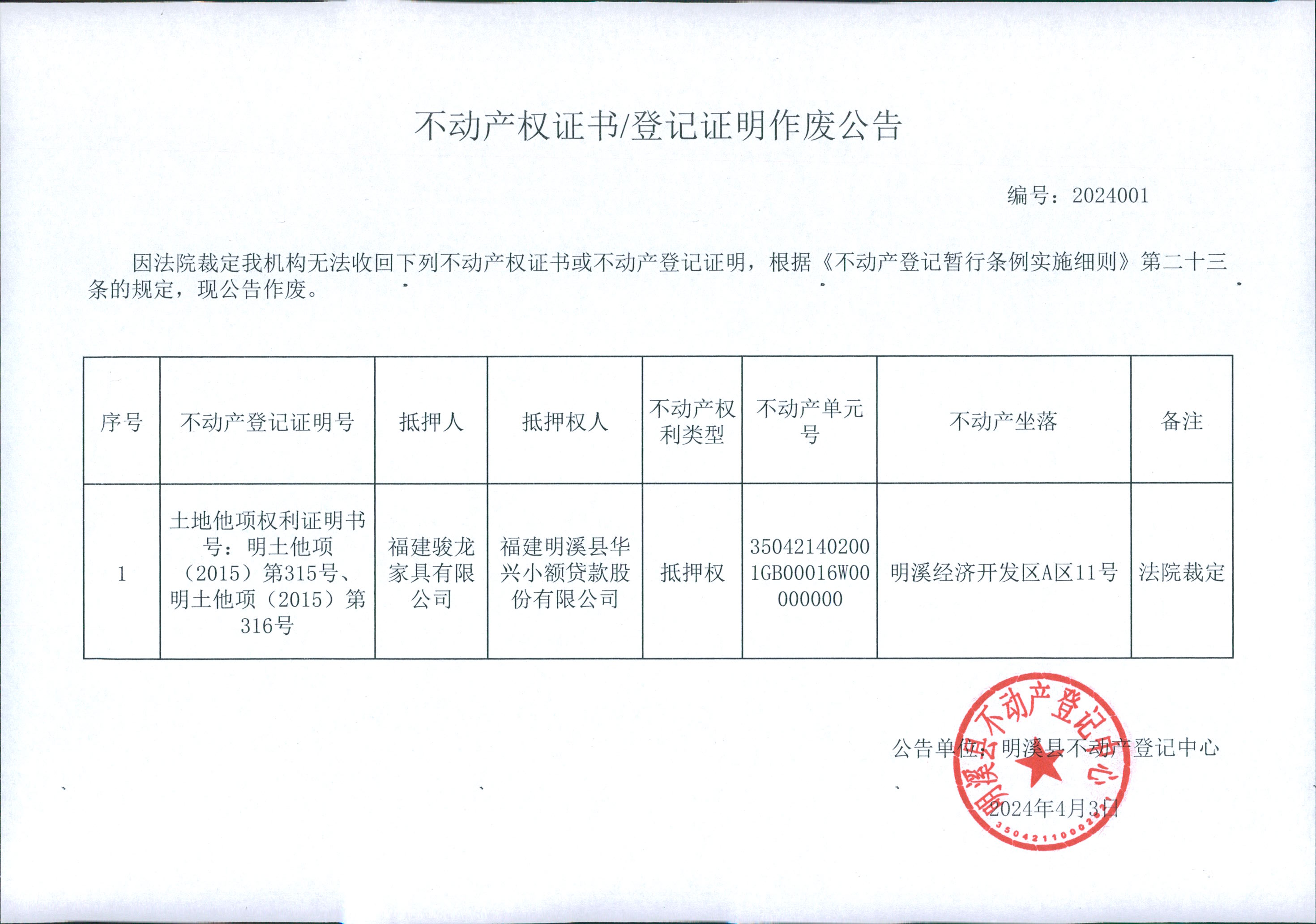 不动产权证书/登记证明作废公告