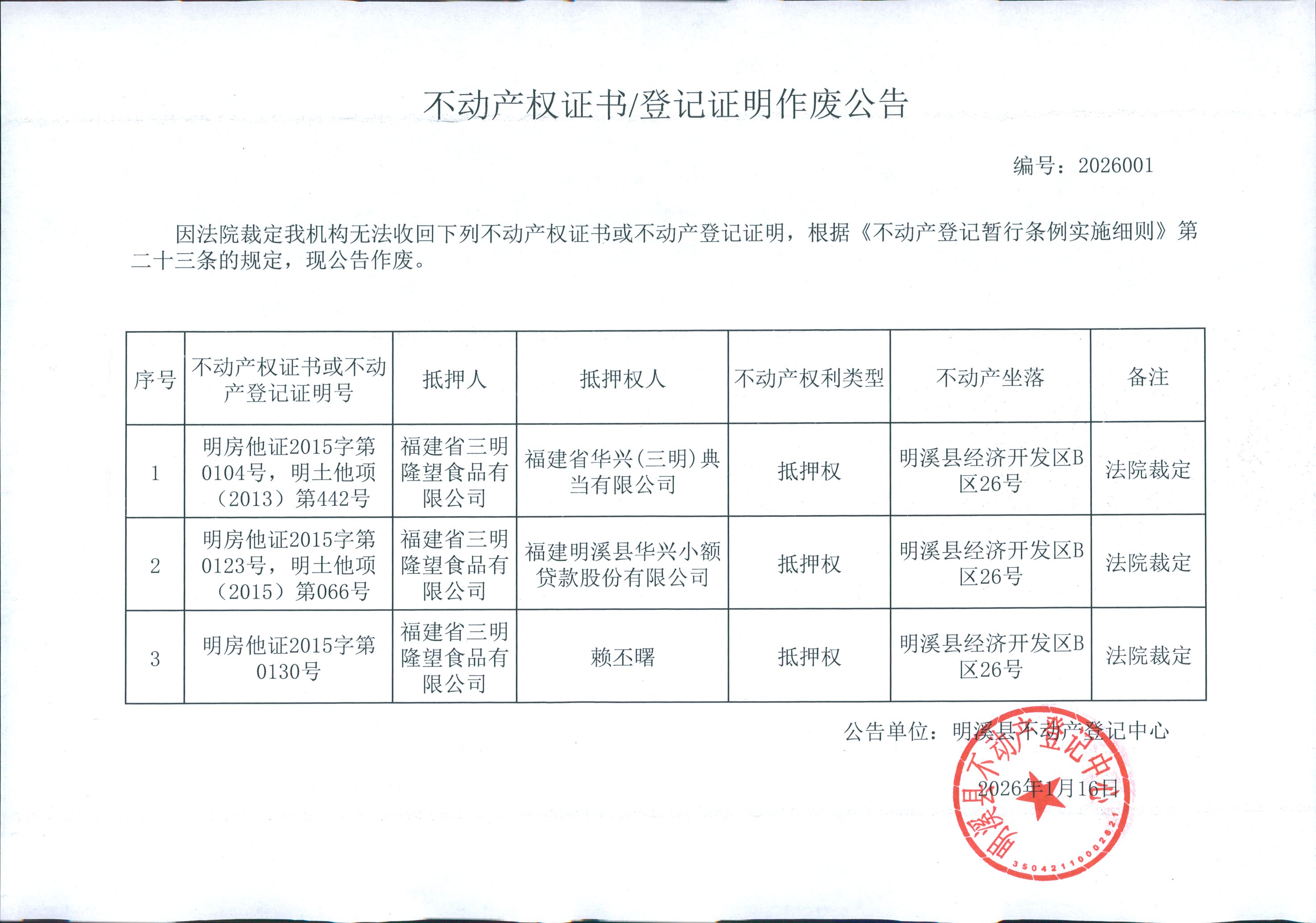 不动产权证书/登记证明作废公告