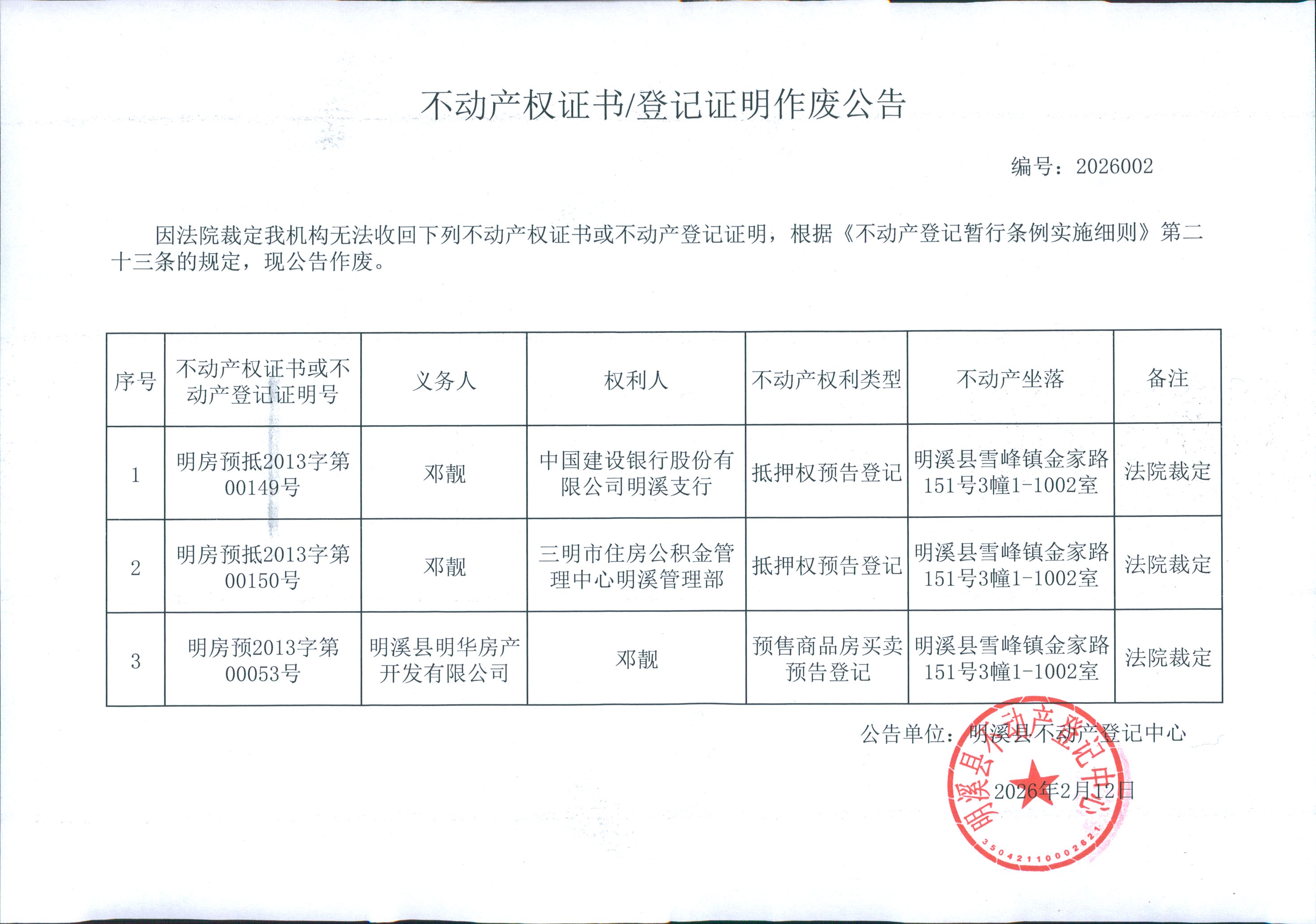 不动产权证书/登记证明作废公告