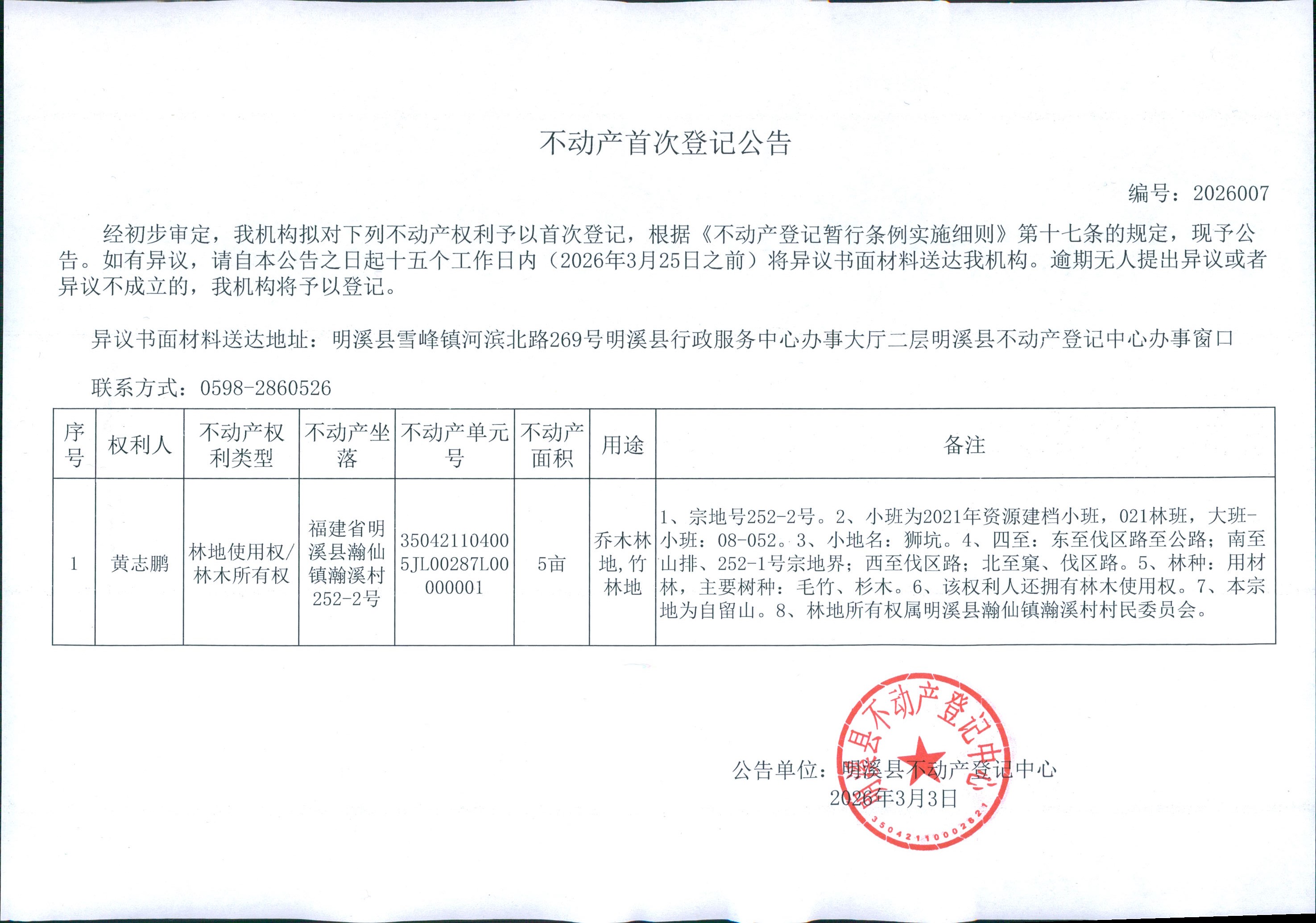不动产首次登记公告