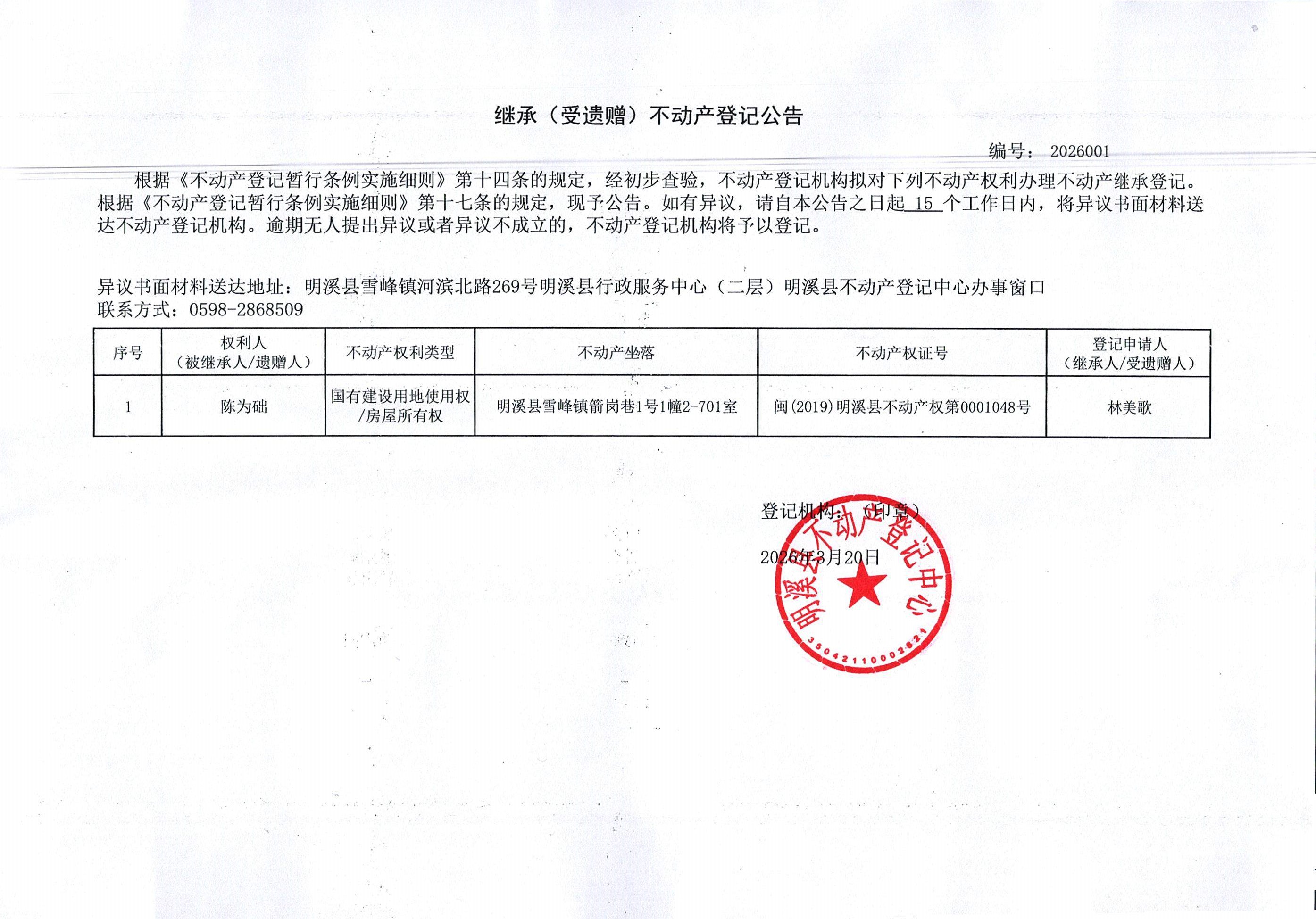 继承(受遗赠)不动产登记公告