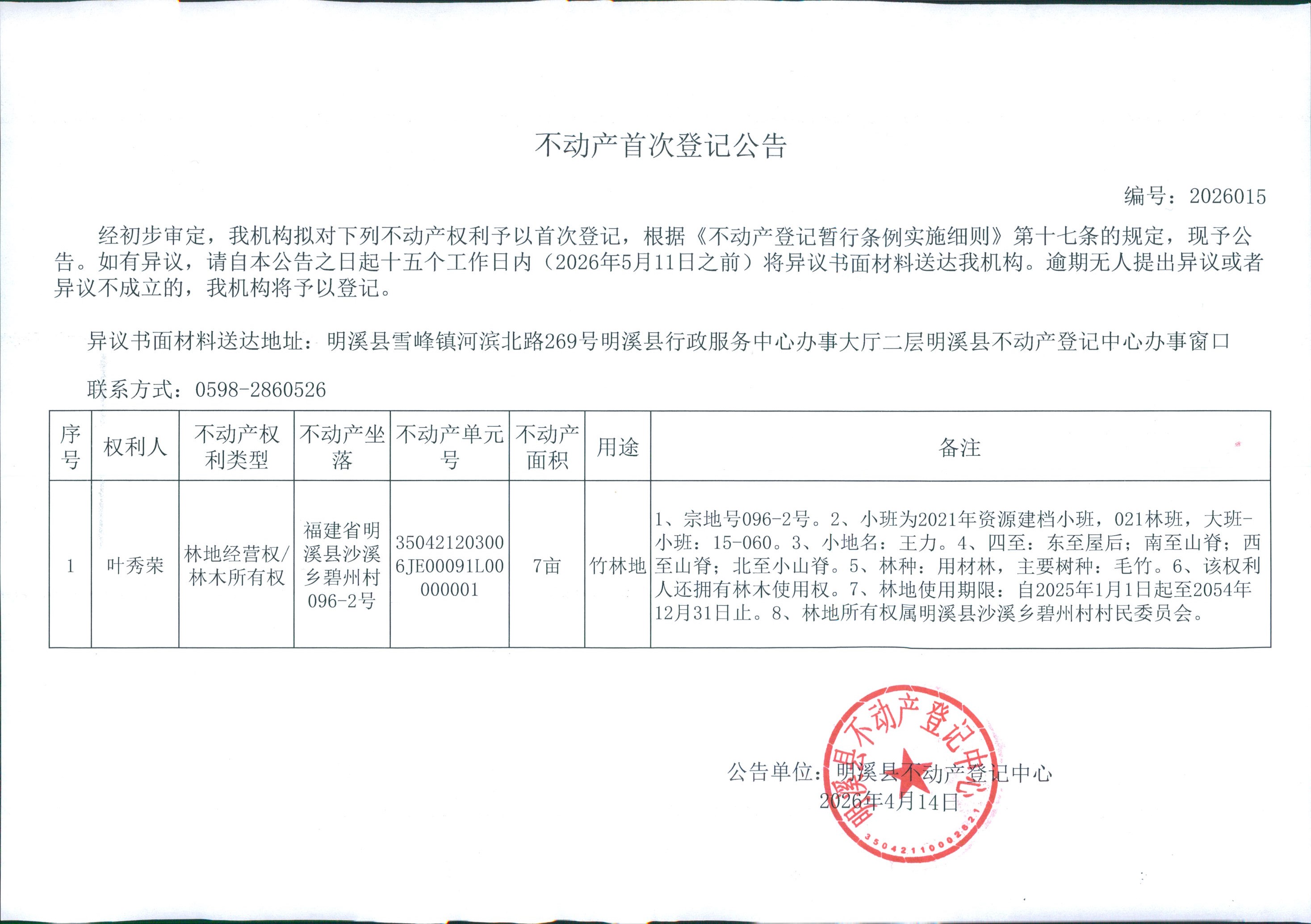 不动产首次登记公告